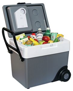The Koolatron W-65 Kargo Cooler solves an age-old problem of motorized travel. Have you ever noticed that when you pack a lot of luggage into your vehicle, the Koolatron Kargo Cooler always gets placed at the bottom of the pile? Have you ever noticed this phenomenon just as you were starting to get really hungry? Koolatron’s W-65 Kargo Cooler has now come up with an innovative solution. The 33 quart Koolatron W-65 Kargo Cooler has a split lid/door, with a 12 volt cooling system in only one of its lids. It also comes with wheels and handle.